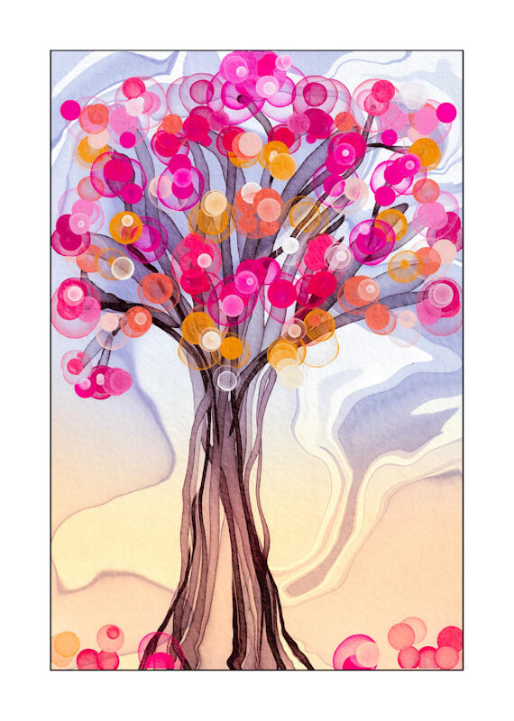 Welcome to the Alcohol Ink collection.This is nature as feeling, not form.Trees shimmer, flowers float like translucent orbs, and rivers of colour spin with gold. These pieces were created in Procreate using digital alcohol ink, playful, vibrant, and full of joy.👉Cards in this collection are available in A5 only printed on archival photo paper and mounted by hand. Envelope included.👉PRICING:
